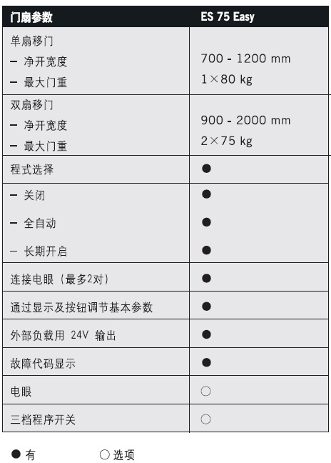 雙扇移門,凈開寬度:900-2000mm,最大門重:2*75kg