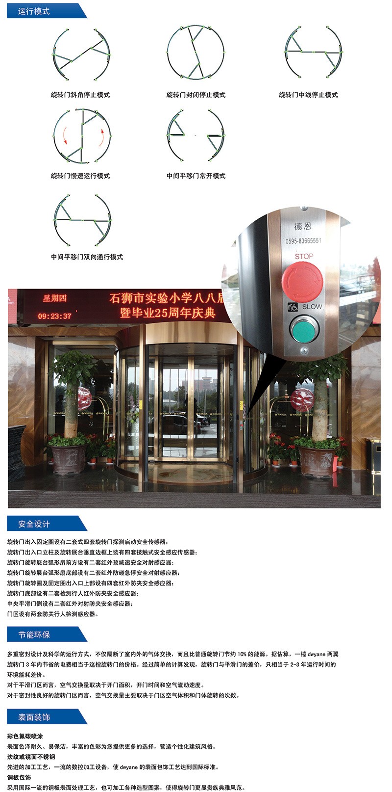 旋轉門減速運行,充分保證兒童、老人和殘疾人的安全。